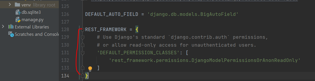 그리고 나서 다시 settings.py에서 위 코드를 추가해 준다. 위 설정은 pagination의 크기를 지정할 수 도 있고, API의 접근 권한을 지정할 수도 있다. 즉, 설정에 따라 admin 사용자일 때만 접근이 가능하게 할 수 도 있다.