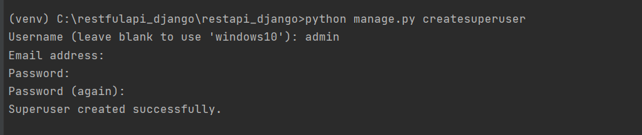 - 슈퍼 유저 생성 시 이메일 주소는 스킵 해도 된다.