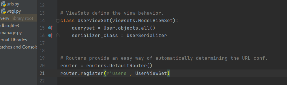UserViewSet 같은 경우에는 실제적으로 "로컬주소/users/" 경로로 GET을 호출하면 UserViewSet 가 실행이 되는데